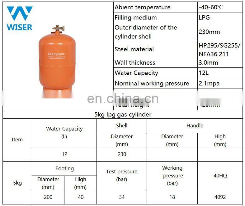 Service for 2018 new factory direct 5kg lpg gas tank with good quality