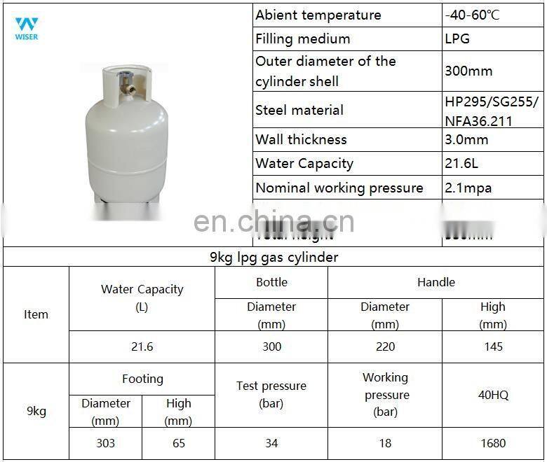 China Wholesale 9kg Natural Gas Cylinder Low Price With ISO Standard