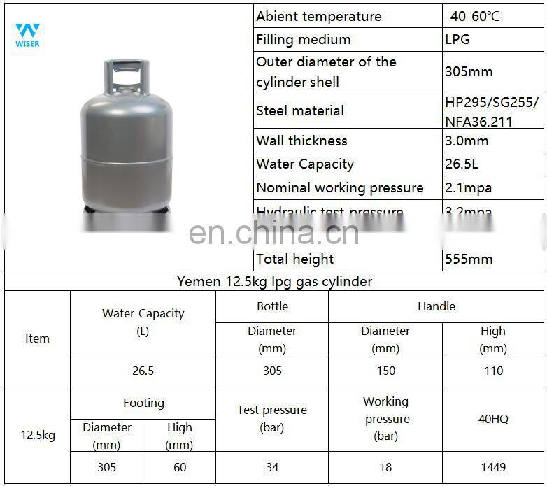 26.5L12.5KG Cooking Gas Cylinder Sizes With Rregulator