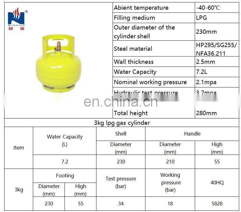 3kg Lpg Cooking Lpg Gas Cylinder Price