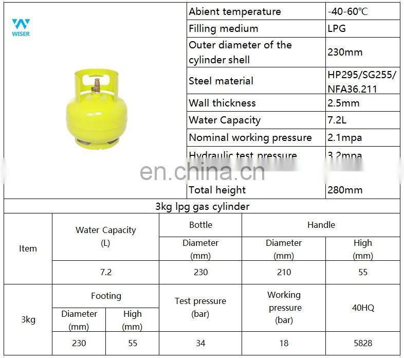 Haiti 3kg Lpg Gas Cylinder With Factory Price