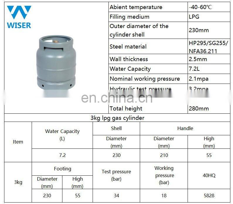 Home > Products > Gas cylinder > Haiti 3KG Gas Bottle, LPG Storage Tank For Barbecue