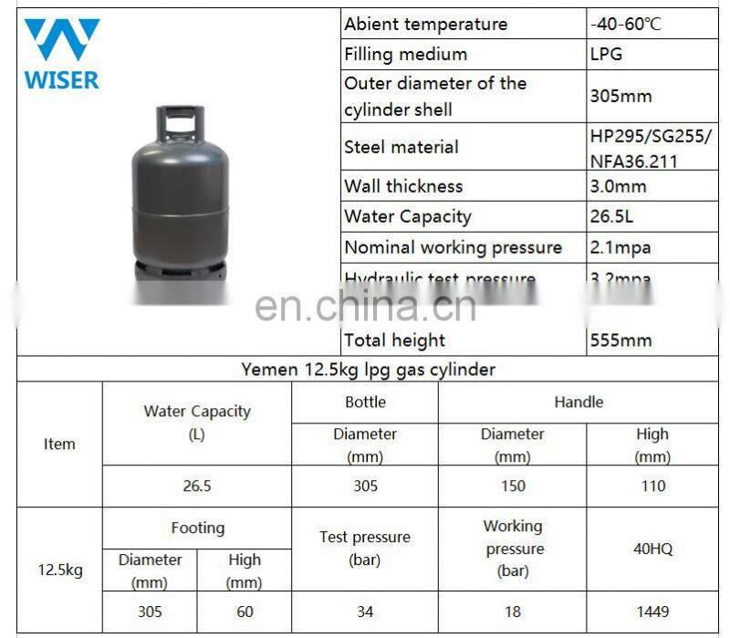 Product name:Wholesale 26.5L yemen lpg gas cylinder