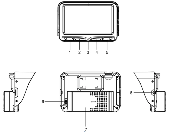 5:Up 6:On/Off 7:Battery Case 8:Interface of External Camera