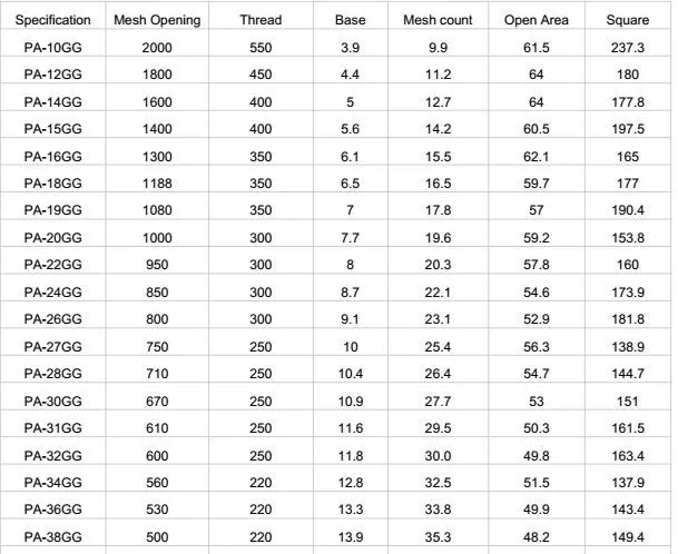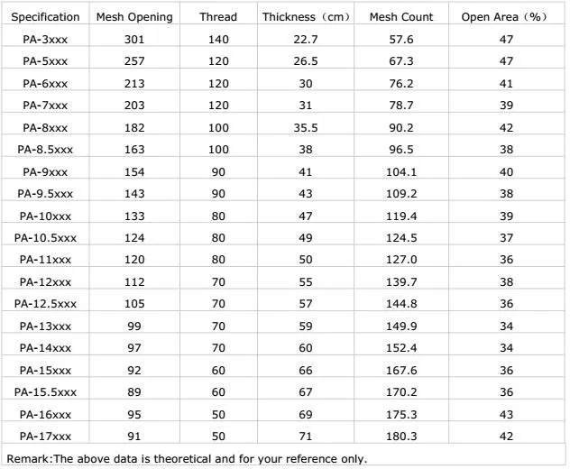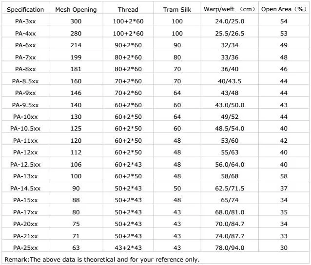 Nylon Flour Mesh included three series: PA-GG, PA-XX and PA-XXX series: Plain weave,mono filament and double filament. Material including nylon(PA6 and PA66).Widely used in milling industry,such as flour milling, corn milling, and other grains milling.