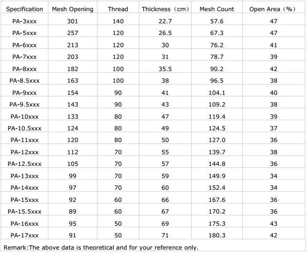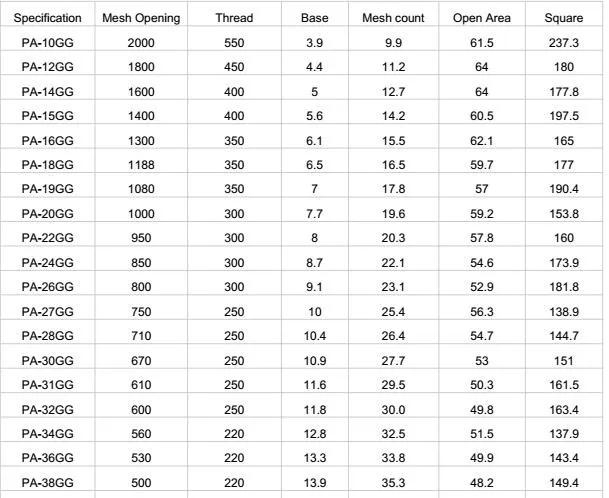 Nylon Flour Mesh included three series: PA-GG, PA-XX and PA-XXX series: Plain weave,mono filament and double filament. Material including nylon(PA6 and PA66).Widely used in milling industry,such as flour milling, corn milling, and other grains milling.
