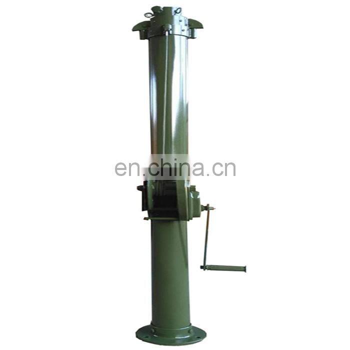 rope.Hand lifting and screw nut power systerm generate upward momentume.The max payload mainlydepends on sections,height, diameter ,the bottom base,and the tripod,pulling cord ,as well the ground or vehicle