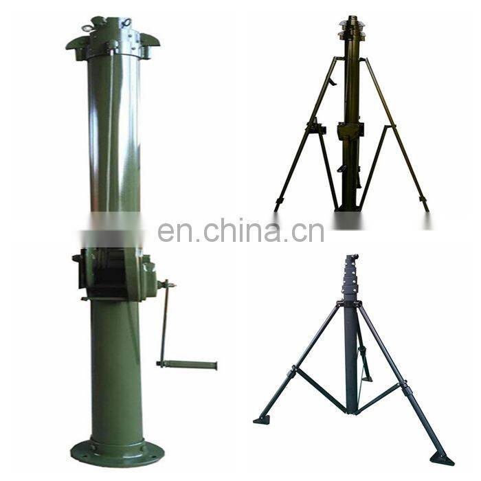 Vehicle 9m Military Crank up Manual Mast Pole With Rotation 360 Degree