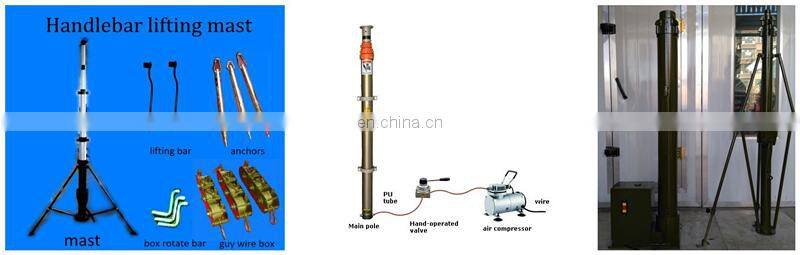 Vehicle 9m Military Crank up Manual Mast Pole With Rotation 360 Degree