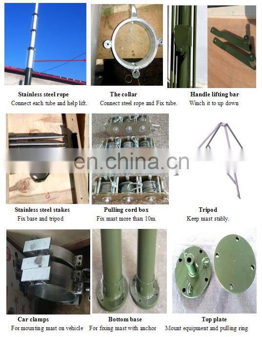 Telescopic mast can be used with lamplight, camera, antenna, mobile and military, emergency, illumination,