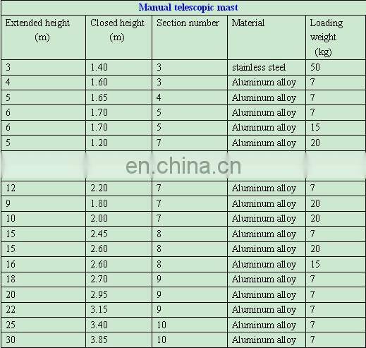 20m Hand Winch Crank up Telescopic Mechanical Mast