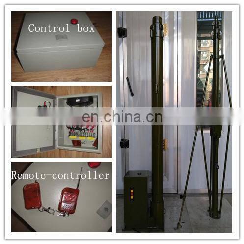 1)The telescopic electric winch tower can be installed on the ground, or on the vehicle. No matter where to install, its installation shall keep vertical with the ground.Tilted telescopic antenna mast will affect the rise and fall of itself, and if the lifting rod tilts seriously or maintain a long time, damage and danger could not be avoided.