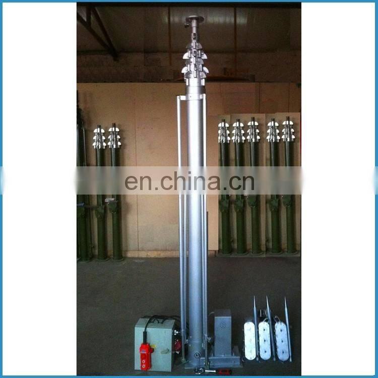 The telescopic electric winch tower can help lamplight, camera, Antenna, mobile and other equipments rise and drop to a predetermined height after its work. It also plays an important role in natural disasters, emergency rescue at night and lightning at the Golf course and large football field.Our product has the advantages of large play load, low noise, fast lifting, strong buffering & stable performance and the like. With high strength aluminum alloy, our products can easily meet the needs of different height and load in different places. It can be installed on the ground or on the vehicle to ensure the application effect.