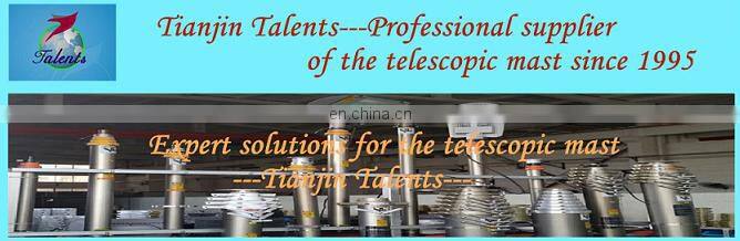 The 8m electrical telescopic mast can help lamplight, camera, Antenna, mobile and other equipments rise and drop to a predetermined height after its work. It also plays an important role in natural disasters, emergency rescue at night and lightning at the Golf course and large football field.Our product has the advantages of large play load, low noise, fast lifting, strong buffering & stable performance and the like. With high strength aluminum alloy, our products can easily meet the needs of different height and load in different places. It can be installed on the ground or on the vehicle to ensure the application effect.