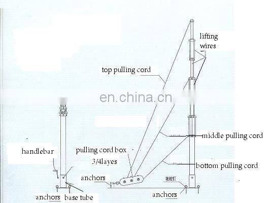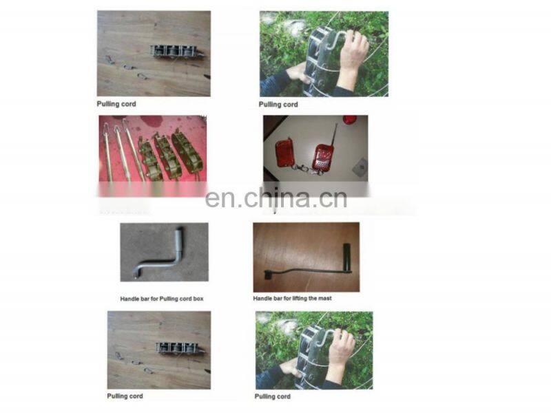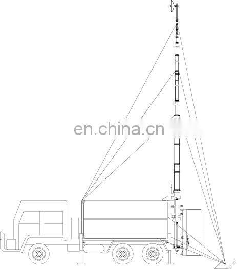 1)the mast can be installed on the ground, or on the vehicle. No matter where to install, its installation shall keep vertical with the ground.Tilted telescopic mast will affect the rise and fall of itself, and if the lifting rod tilts seriously or maintain a long time, damage and danger could not be avoided.