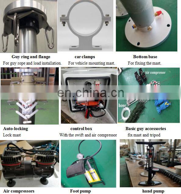 Good Quality 2m 4m 6m 8m 10m 12m Telescoping Mast Pneumatic Air Pump Rising Evaluation Mast