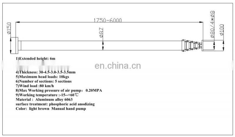 Good Quality 2m 4m 6m 8m 10m 12m Telescoping Mast Pneumatic Air Pump Rising Evaluation Mast