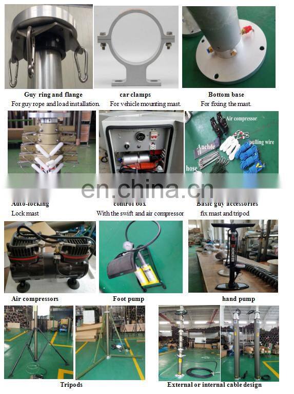 20ft 6m Pneumatic Aluminium Push up Telescopic Portable Antenna Mast