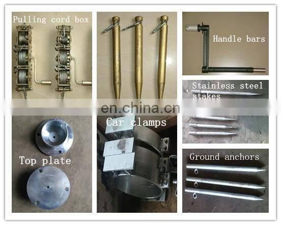 (1)With high strength aluminum alloy, our products can easily meet the needs of different height and load in different places. When the mast is mounted on the ground, a tripod and pulling cord are useful to firm it.