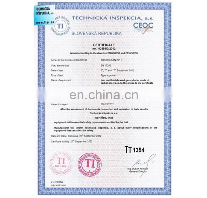 TPED certificate is for Europe market, it is also safety certificate on pressured vessel transportation
