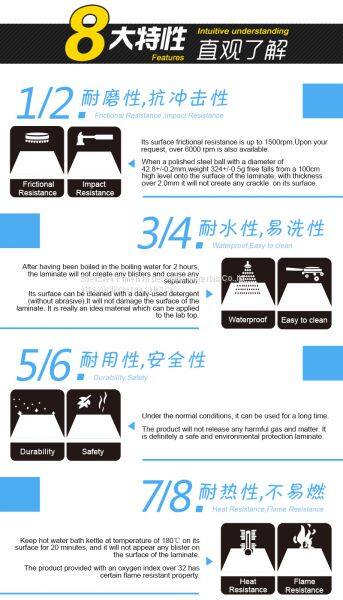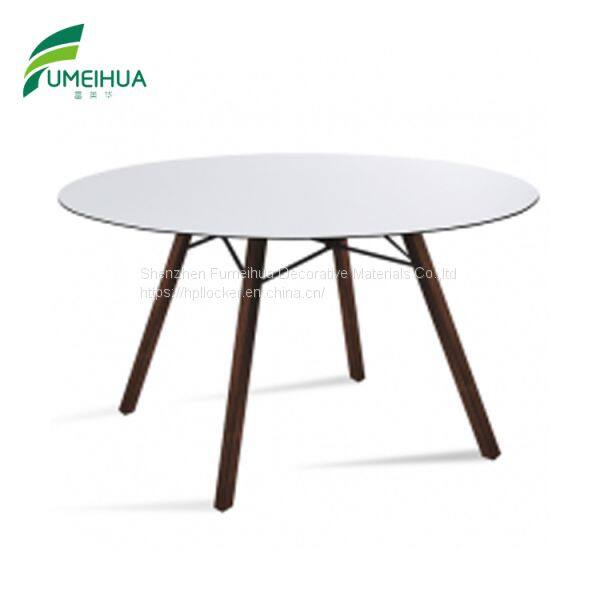 Fumeihua table top is made of solid phenolic laminate(HPL) under high quality and precise processing ,which is extremely water resistant,heat resistant, fireproof, anti-scratches ,UV resistant(outdoor grade), be widely used in restaurant, cafe ,school, office , garden ,swimming pool ,and other commercial center.