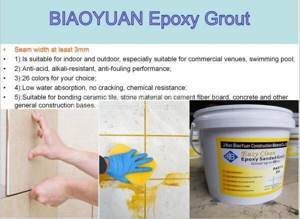 BiaoYuan Epoxy tile grout is double component product, which is color uniformity, durability and stain resistance, high compressive strength, and has longer lasting color than general grout.