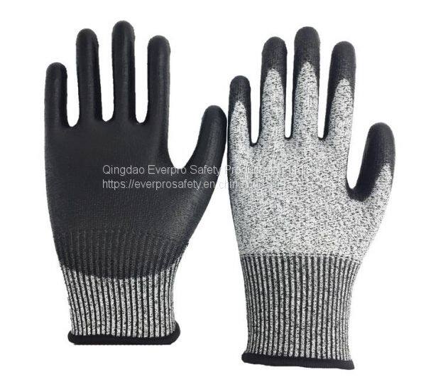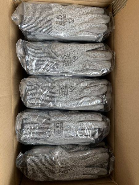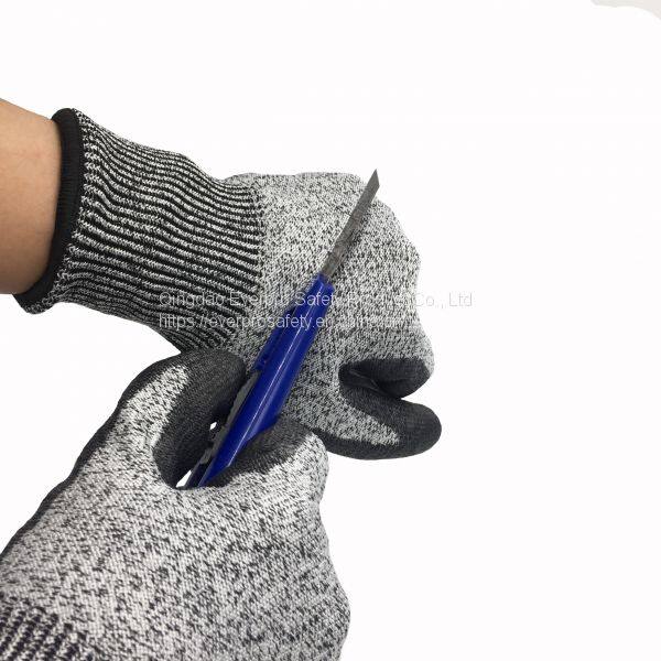 Anti Cut Level 5 HPPE Liner PU Coated Cut Resistant Safety Gloves With CE EN388 4X43C