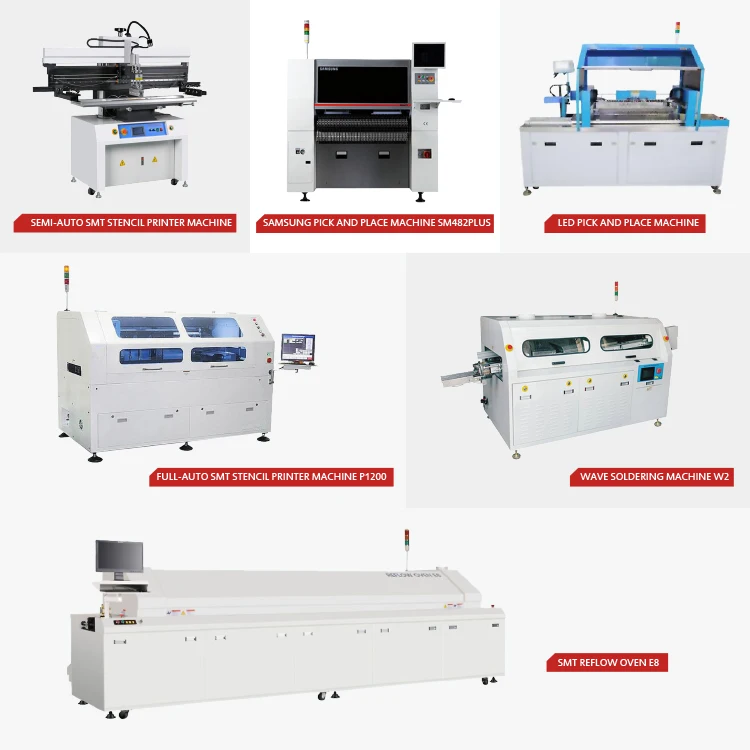 Semi-auto printer”P12”+conveyor+led mounter”SM482”+conveyor+reflow oven”E8”+working table(size:12.3*2*1.65m)