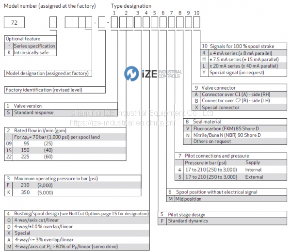 The Selection reference of MOOG servo-proportional control valves Series 72