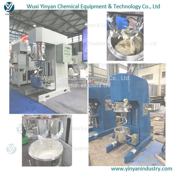 High visocus paste making machine, dual planetary mixer is an effective and no dead conner mixing equipment, it has a unique, innovative form of stirring, according to customer's production processes and requirements, we could offer different mixing structure designs of the mixing agitator, usually it consists of a double low speed mixing agitators and a single high-speed dispersing shaft and a set of scrapers.
