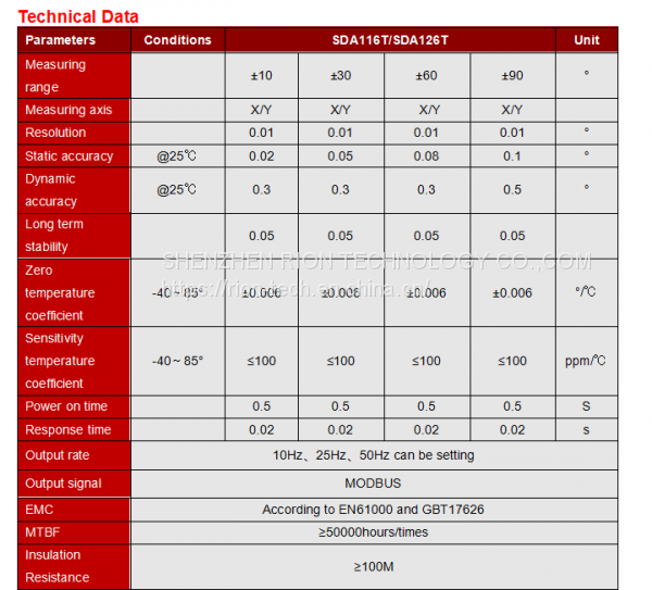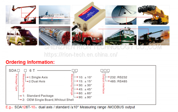 SDA116T/SDA126T, RION produced voltage output dynamic and static dual-mode tilt sensor for industrial field control, integrating dynamic and static dual-mode combination algorithm.