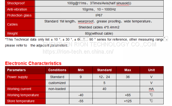 ●DC 9~36V power supply ●working temp: -40~+85℃ ●resolution: 0.01°