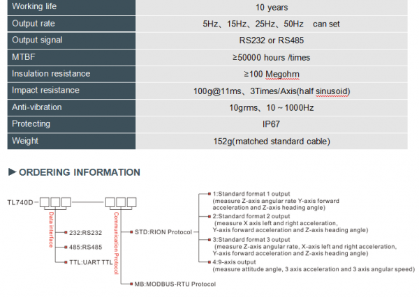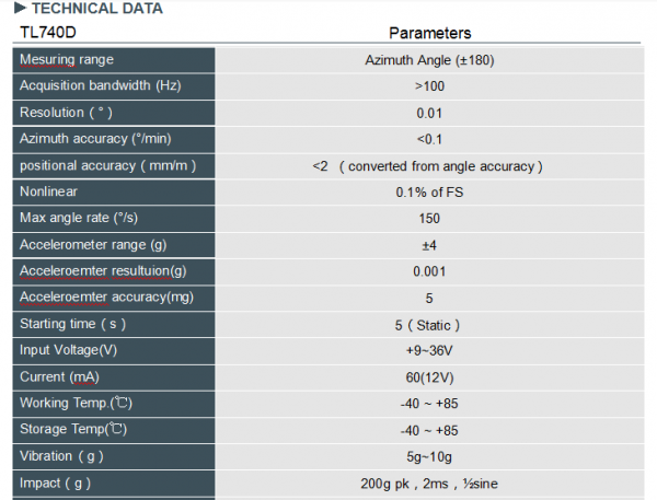 TL740D is RION company newly developed horizontal azimuth angular gyro sensor based on latest MEMS inertial measurement platform , by means of the dynamic attitude algorithm for the angular velocity of gyroscope ,it can simultaneously output carrier’s azimuth angle .The product inernal integrated RION’s Patent Inertial navigation algorithm, through the model of attitude angle data fusion , can solve the gyro short time drift problem as much as possible .
