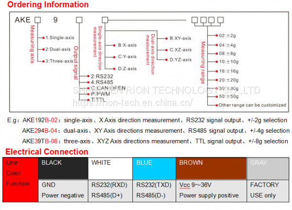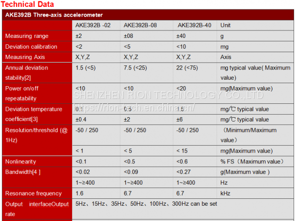 AKE392B three-axis accelerometer sensor series products is RION company imported the Switzerland patented technology to produce for using widely, suitable for vibration testing, impact testing and more fields. The product uses a digital interface output, RS232/485/TTL optional, can be set to a different address code, long distance series with multiple sensors to facilitate multi-point measurement and data analysis.AKE392B is a monocrystalline silicon capacitive sensor, composed by a silicon chip of micro-mechanical treatment, low power ASIC for the signal adjustment, a microprocessor for storing compensation value and a temperature sensor. The product with low power consumption, after calibration, firm structure, stable output . New electronic configuration reset to provide a solid-state power, to provide comprehensive protection for over current. Scale factor in the full range of long-term stability and the deviation is typically less than 0.1%.This series products with firm structure,low power consumption, excellent deviation stability .etc characteristics to guarantee the reliability of outstanding output .