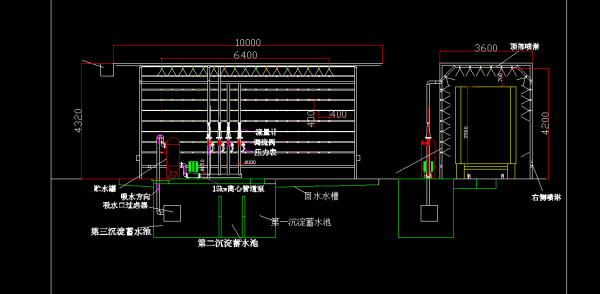 Spray system: consists of negative pressure water storage tank, water pump, gate valve, electromagnetic valve, main pipe, branch pipe, adjustable Angle nozzle, etc.