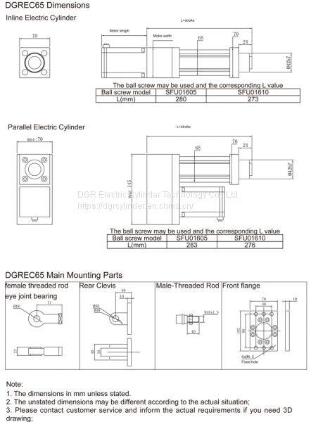 DGR-EC-65 Electric Cylinder Actuator for Robotic Arm Technical Data: