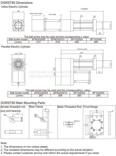 DGR-ST-85 Electric Linear Actuator With Servo Motor Technical Data: