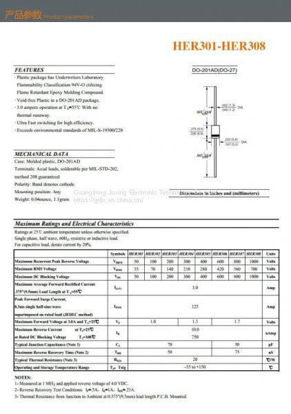 ER308G is the Superfast Rectifiers diodes make by Juxing packed by DO-27 case