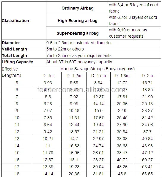 For air lift use, airbag's diameter or length is mainly decided by the buoyancy you need from airbag. And also consider the pressure of airbag stands if you apply airbags in deep water.