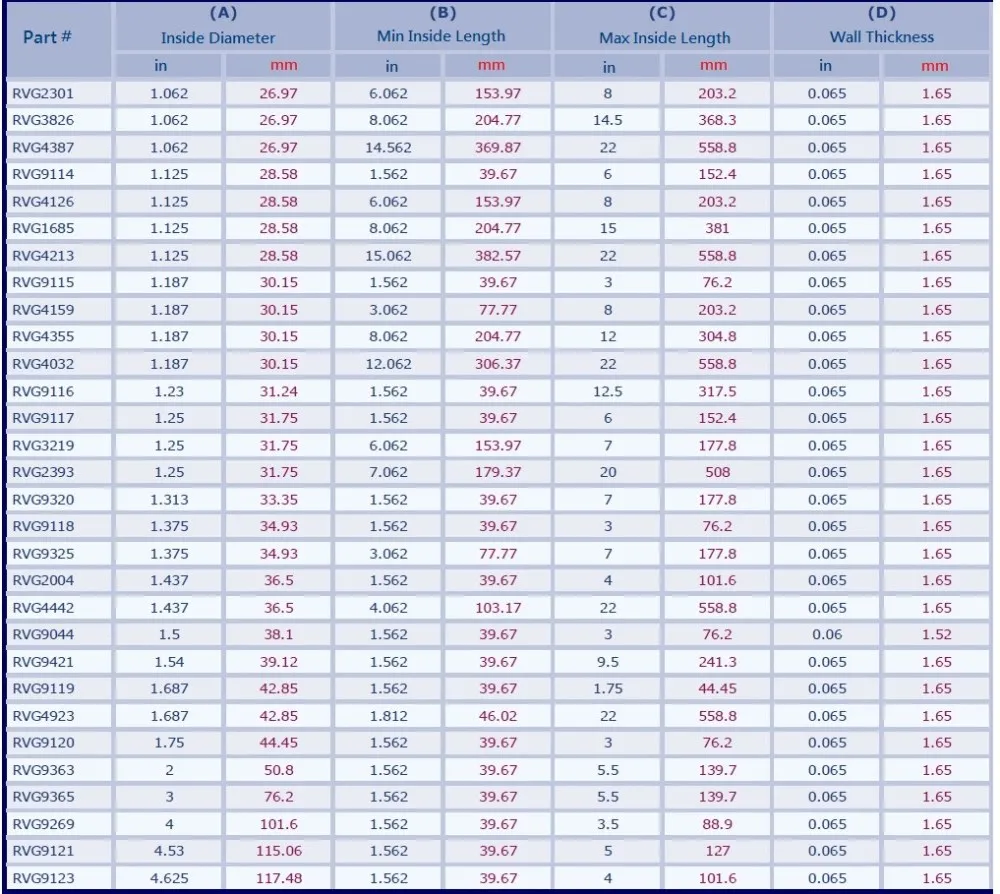 Flat vinyl plastic Grips can be produced in lengths from 1-1/2" up to as long as 8" for some sizes.