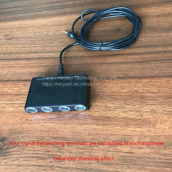 Expander: The expander uses an injection-moulded shell with four metal signal transmitter terminals embedded in front and a special line jack in the back. Its size is 95*59*23mm. It is compact and easy to install and camouflage. When working, the signal transmitter terminal is aimed at the illegal recorder and placed on the desktop or under the desktop opposite to the illegal recorder seat (the closer the illegal recorder is, the better). The shielding distance of a single expander is 1-2 meters (different recording devices are different). The length of the expander and the host label wiring is 3 meters, which can fully meet the needs of general scenes. When the system works, the host can be placed arbitrarily when the online length permits.