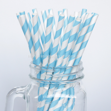 Eco-friendly Paper Straw in Blue Stripes Decorated Paper Drinking Straws 6mm 8mm