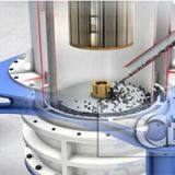 The rollers tightly rolled on the ring under the effect of centrifugal force. Shovel sends material between the roller and ring and the material is grinded into powder under the high pressure.Then the fan blows the power up into the analyzer. At this time, the power material met the fineness requirement get through the analyzer and get into the power cyclone separator while the others will be sent back for re-grinding.The whole system is airtight circulation.