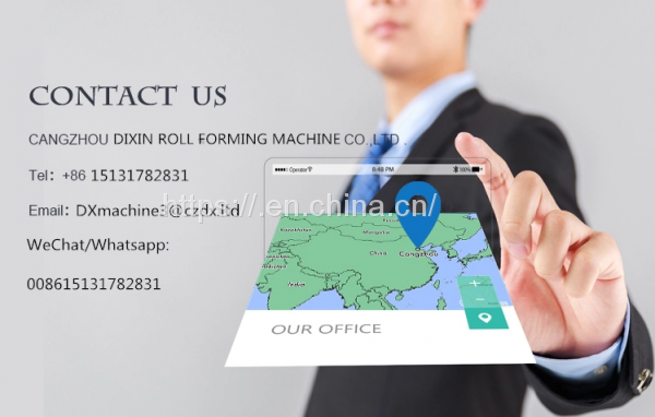 Cangzhou Dixin Roll Forming Machine Co.,Ltd,Our company is the professional and leading manufacture,can manufacture ,design,installation and debug various roll forming machines and metal processing sheet equipments ,which produce metal roof wall panel,glazed roof tile , CZ steel purlin,floor desking,roof ridge cap,sandwich panel ,roof rtruss,shutter panel,shutter slat,door frame, guardrail ,and metal sheet uncoiler ,bending ,slitting,cutting,flattening,punching,crimpingl. especially can design machine according to customer's request.