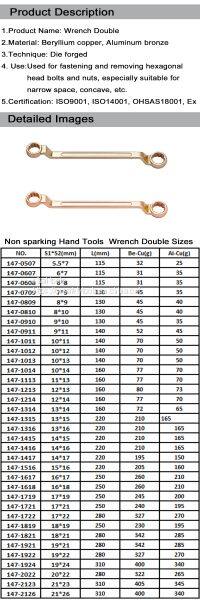 Non Sparking Anit-explosion Wrench Double Box Offset Beryllium Copper 20*22mm