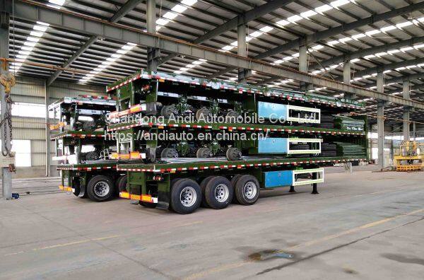 Two units flat bed semi trailer put into one 40HQ container , the trailer part connecting by the bolts with the trailer body