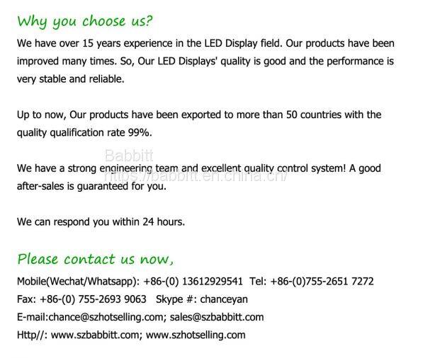 | Others(Exclude): | Control card,remote control,LED number dot, Power cable,Flat cable, communication cable,outside frame,Brightness se |