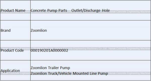 The Specifications for Zoomlion Outlet Discharge Hole: