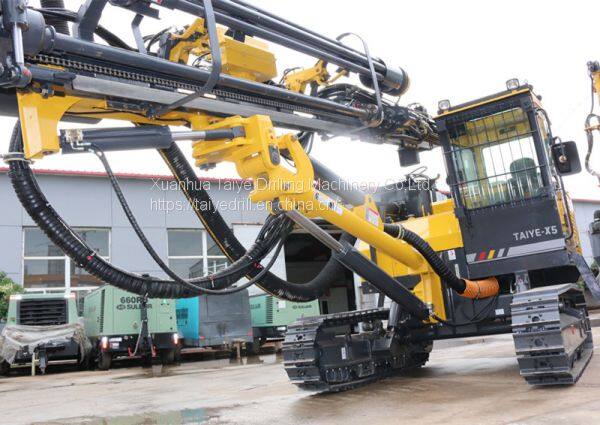 Taiye-X5 DTH drilling rig calculation optimization design,development and application of power system from power to pump load adaptation system,realizes the power matching of power system from power to pump to load,effectively reduces the energy cosumption of the whole machine,and ensures the performance and high reliability of the whole machine.It is suitable for large and medium open pit mines such ascement,metallurgy,coal mines andquarries.