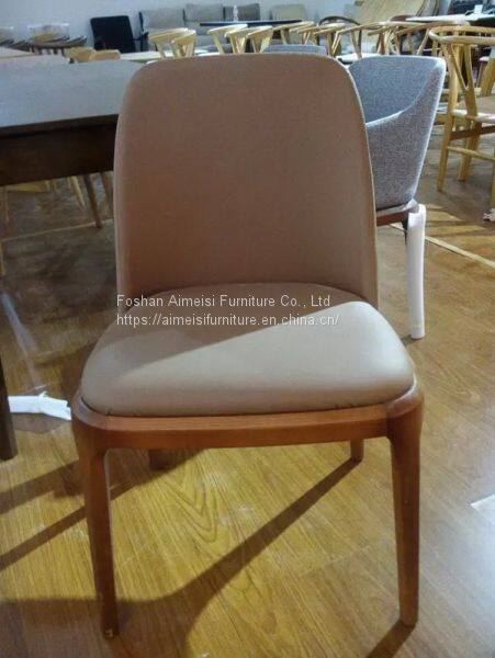 Ash Wood Frame Leather Cushion Dining Room Furniture Wooden Armchair
